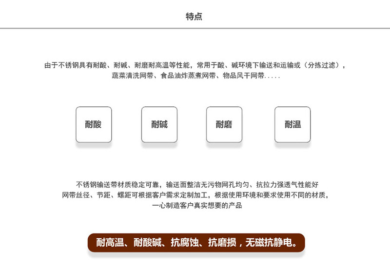 材質(zhì)有不銹鋼304、不銹鋼316、不銹鋼 1Cr18Ni9Ti特等材質(zhì)不銹鋼絲制作。